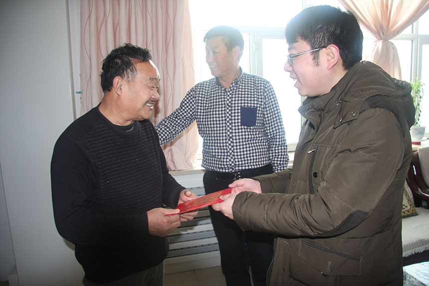 (本報(bào)訊:)愈近春節(jié),年味愈濃。在舊歷馬年即將過(guò)去,猴年即將到來(lái)的辭舊迎新之際,也是一年中最冷的時(shí)候,1月26日、27日,集團(tuán)公司總經(jīng)理彭超偕同監(jiān)事會(huì)主席于兆全、副總經(jīng)理蘇曉海,集團(tuán)董事鄭玉元等領(lǐng)導(dǎo)冒著零下22°的嚴(yán)寒,帶著集團(tuán)的問(wèn)候挨家挨戶走訪慰問(wèn)了85名老股東。